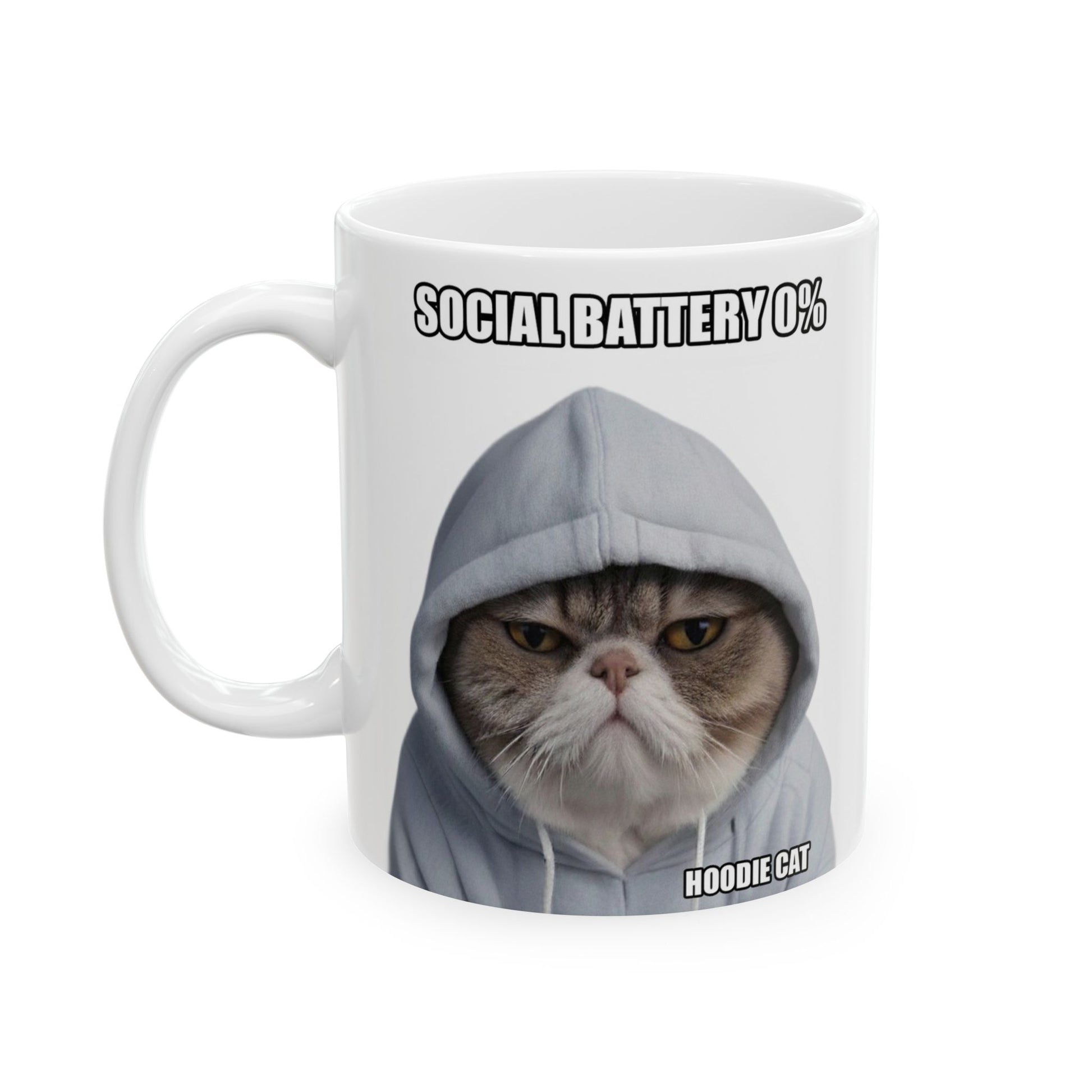 Hoodie Cat Mug – Social Battery 0%
